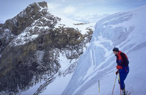 2日目はスキーを持ってティトゥリス山(3,033m)へ出掛けた。エンゲルベルク鉄道で南30数Kmのエンゲルベルクまで行き、ロープウェイを乗り継いで一気に山頂直下に行ける。最後のロープウェイは上まで行く間に1回転するという展望サービス付きである。ここを訪れる半分は観光客で、私の行った時はインドネシアの団体に占領され、私のスキーは記念写真の小道具として借り上げられ、暫く戻って来なかった。頂上近辺は氷河地帯で中斜面、さすがに雪質も良かった。