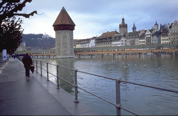 ルツェルンはフィアヴァルトシュテッター湖 (Vierwaldstaetter See−4つの森の国の湖)のほとりにあり、スイスのほぼ中央部に位置する。中世の面影をとどめる静かな美しい町で、旅行案内書にスイスの中で最もスイスらしい街と紹介されていた。例えば湖上の遊覧船からの景色はまだ冬で鮮かではないが、明るい草原に草をはむ家畜と点在する農家の春景色を想像すると、日本人の思う"スイス"がそこにあった。