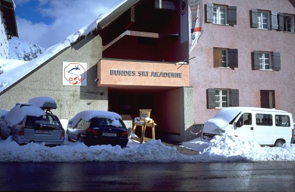 全日本スキー連盟(SAJ)のスキー教程のできる前、昭和32年にクルッケンハウザー教授著「オーストリア スキー教程」が法政の福岡孝行氏によって翻訳され、この本により日本でオーストリアスキーが広まるきっかけになったのであるが、この本を見せたらある写真を指して、「これは僕だ。」と言っていた。おそらく当時20歳を前にしていたはずで、既にデモンストレーターの端に加えられていたのだろう。今回もお会いしたが元気で指導を続けている。写真は前年度版でも触れたザンクト・クリストフにあるオーストリア国立スキー学校の本拠地"ブンデス シー アカデミー"のものである。