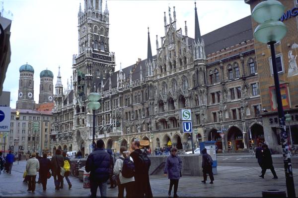 通っているドイツ語教室でミュンヘン観光のビデオが教材としてとりあげられ、勉強したことがあるので興味深く臨んだ。第1日目は月曜で博物館など休館のところがあり多少影響を受けた。詳細な解説は他に任せるとして、印象に残ったものだけ順に触れてみる。マリエン広場に面した新市庁舎は新と云っても18世紀後半から19世紀始めにかけて建築されたネオ・ゴシック様式の古びた建物である。塔半ばにある仕掛け時計が有名で、仕掛けが動く時間には何処からともなく観光客が集まって来て急ににぎやかになる。