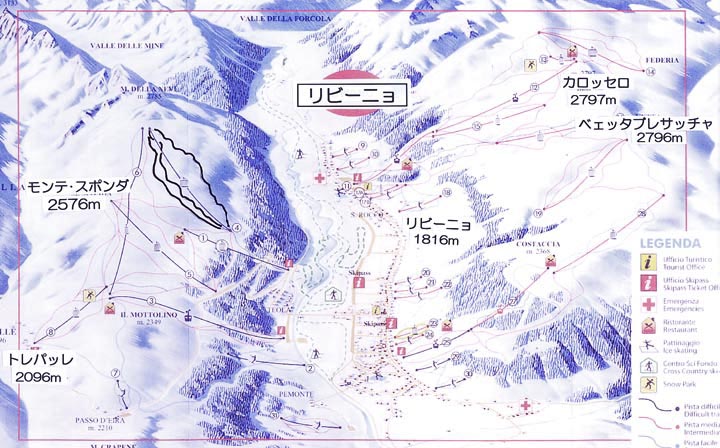 リフトパスを購入する際そのスキー場単独か、近辺の共通パスか聞かれることがある。この様な場合より広域のものを選ぶようにしている。料金は何割か高いが未知のスキー場に出会えるチャンスである。今回ボルミオに劣らず魅力を感じたそのスキー場の名は"リビーニョ"と次項"サンタ・カテリーナ"。