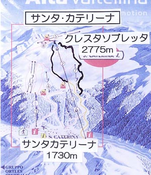 ヨーロッパのスキー場を広く紹介しようと思い、常に新しい場所を探しているのだが、近年かなり苦労している。それだけに日本では全く無名にも関わらず、素晴らしいのを見付けた時の喜びは大きい。見付けた経過は異なるが、昨年のサーファウス・フィス・ラディスに相当するのが今回のリビーニョ、サンタ・カテリーナである。前に記したがボルミオのリフトパスを購入した時、初めて知ったスキー場である。