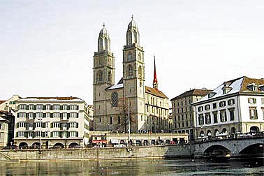 | グロースミュンスター大聖堂とリマト川/チューリッヒ/スイス |