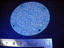 配線?完了後の写真がこれ。 CRDはすべてパターン面に実装しLED側には何も出さないようにした。 オマケにLED側の基板を銀色に塗ってみた(少しは反射が期待できるかも?) 穴も埋めて磨き出せばもっと綺麗になったかもしれないが、後の祭り。  |