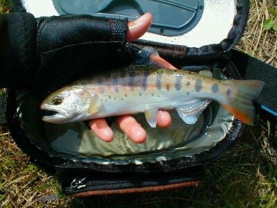 まだ ここには数匹魚がいるのがわかったので 暴れさせないように一気に抜いた...イワナだ!そして取り込む際にふと足下を見ると