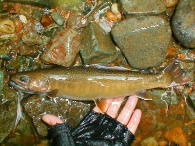 ゆっくり 慎重に近づく 竿をスッーと 伸ばし 振り子のように餌を落ち込みの泡の中に流す 流れに合わすように下流へと自然に流し 餌が止まった瞬間 アタリが来た 典型的なアタリかた この時点でイワナと確信した ラインは止まったまま まだ イワナは自分が針を飲み込んだ事がわかっていないようだ 少し上流にラインを引く するとグッと重い その瞬間合わせ針をかけた! イッキに潜り始め となりに居たヨツの釣りを邪魔してしまう 慎重に寄せ タモに入れ 尺イワナの登場です ひさびさの良型 大満足である