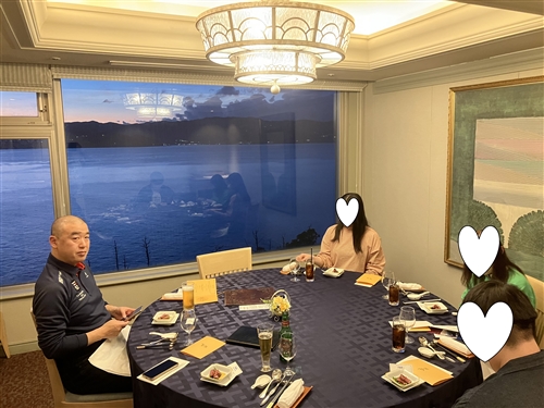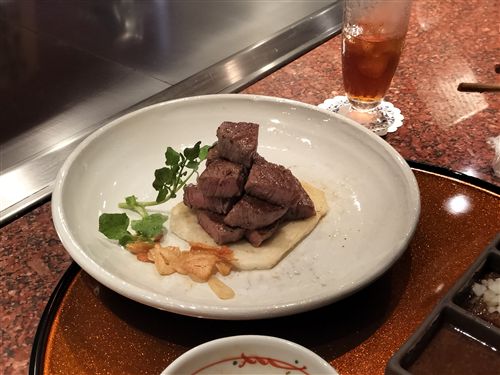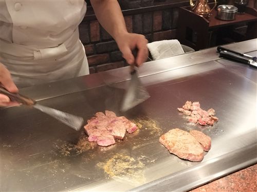 レストランは平日の昼間なのに満席でした。シェフの見事な手さばきで美味しそうにステーキが焼きあがっていきます。ガーリックライス・デザートも絶品でした。このようなレストレンに通うことができるよう、これからの大学生活をしっかり過ごし、ステキな社会人になってほしいと祈っています。